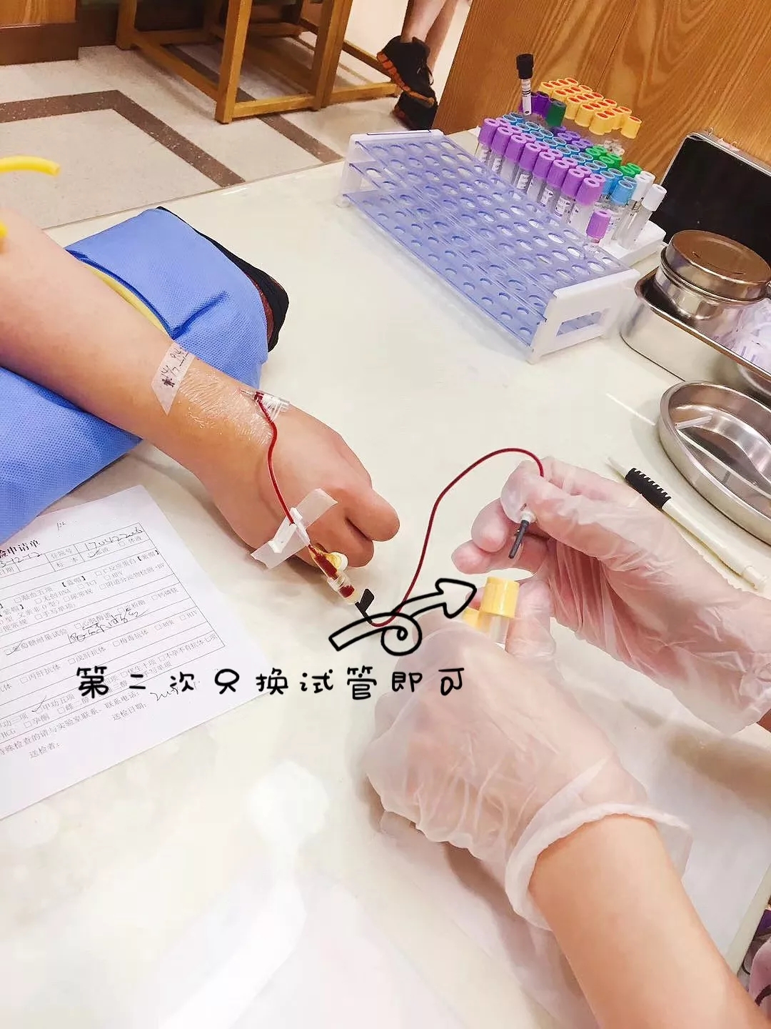 保持空腹,配合医护人员,在静脉处抽血,然后立刻送检。